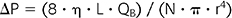 where ΔP is the pressure gradient across the dialysis membrane, η is the blood viscosity, L is the length of the dialyzer membrane, QB is the blood-flow rate, N is the number of hollow fibers in a dialyzer, and r is the radius of the hollow fiber.