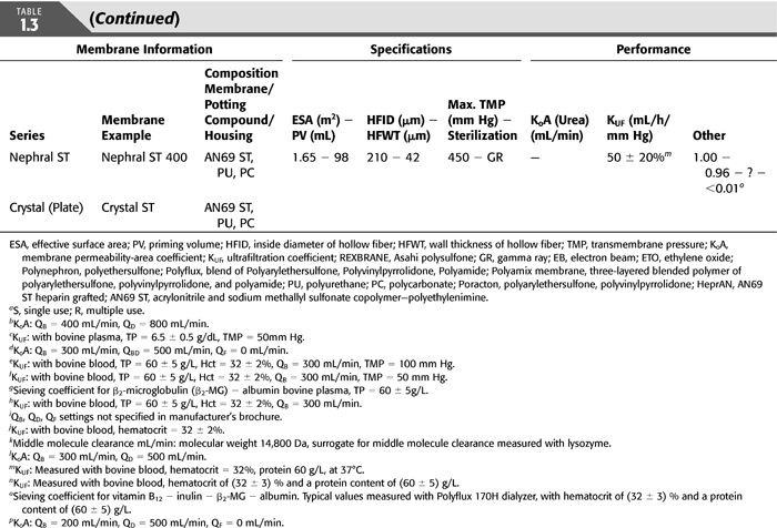 There is no one classification of dialysis membranes by geometric design, chemical composition, efficiency, flux, or biocompatibility. With the continued development of newer membranes, there is a considerable overlap when considering all these criteria (TABLE 1.1).
